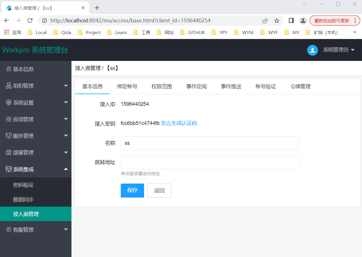 进入 系统集成 / 接入管理,点击 新增接入